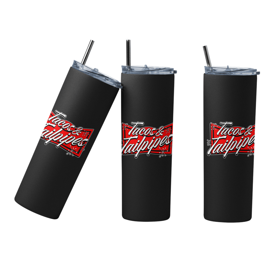 "Tacos & Tailpipes" - 20 oz Straight Skinny Tumbler – Insulated Stainless Steel